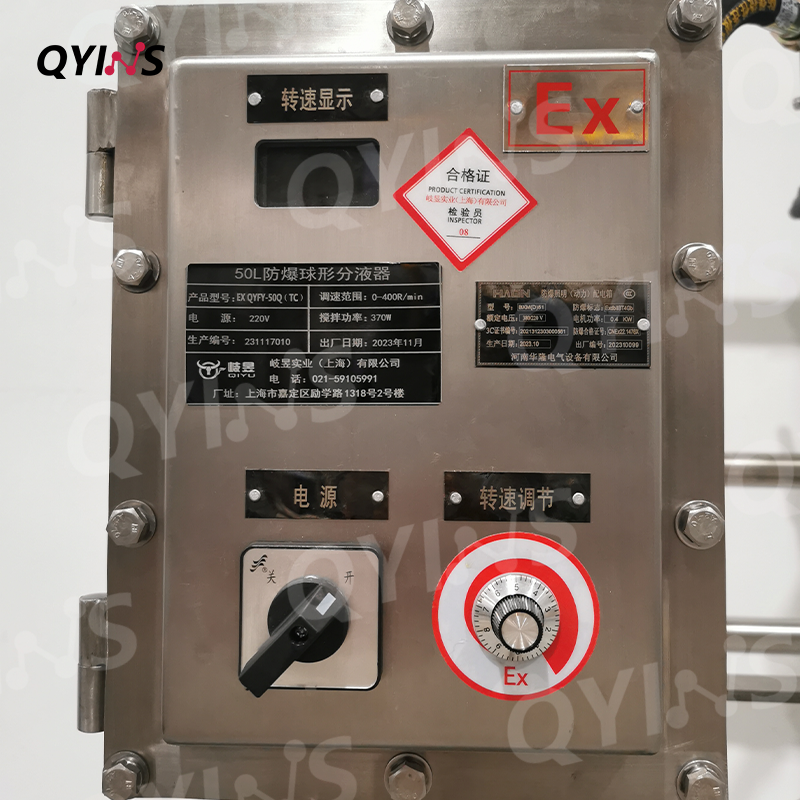 防爆304不銹鋼外殼,耐腐蝕,數(shù)顯溫度和轉(zhuǎn)速,符合GMP車間防爆等級:ExdIBT4Gb:適用于GMP車間,防止火花產(chǎn)生。