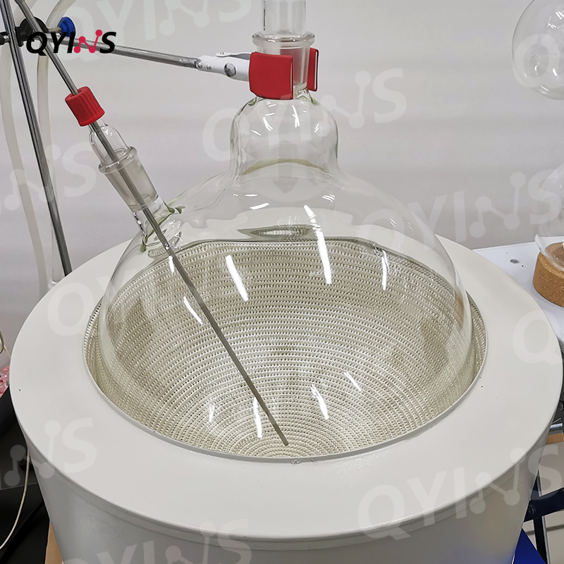 蒸餾彎頭與冷卻冷卻機(jī)連接,使物料冷卻、收縮。