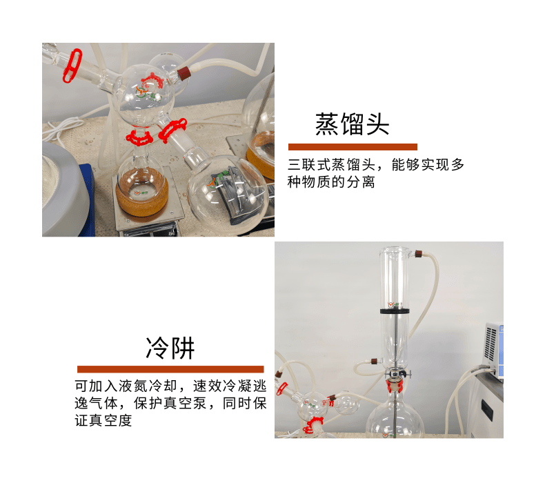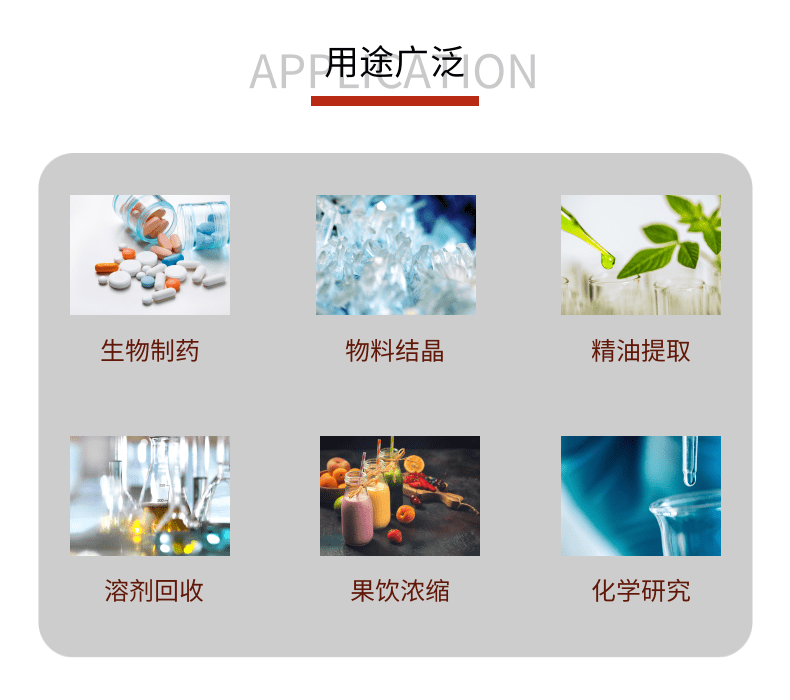 本款短程蒸餾,冷凝器與加熱面距離很近,能把氣相物質(zhì)瞬間液化,因此能維持設(shè)備內(nèi)部的高真空,特別適用于常壓下高沸點,用普通分離方法難以分離的物料。