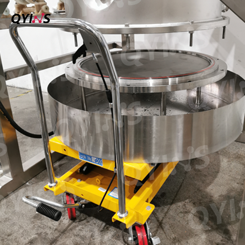 可移動(dòng)升降接料小車+不銹鋼托盤,輔助使用人員快速安裝或拆卸過濾裝置,便于收集固狀粉狀物料。