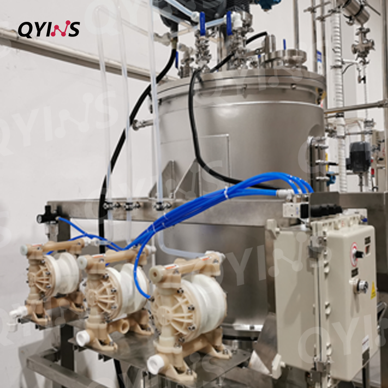 氣動(dòng)隔膜泵實(shí)現(xiàn)半自動(dòng)進(jìn)出料,有效減少人工操作,大大提高工作效率。