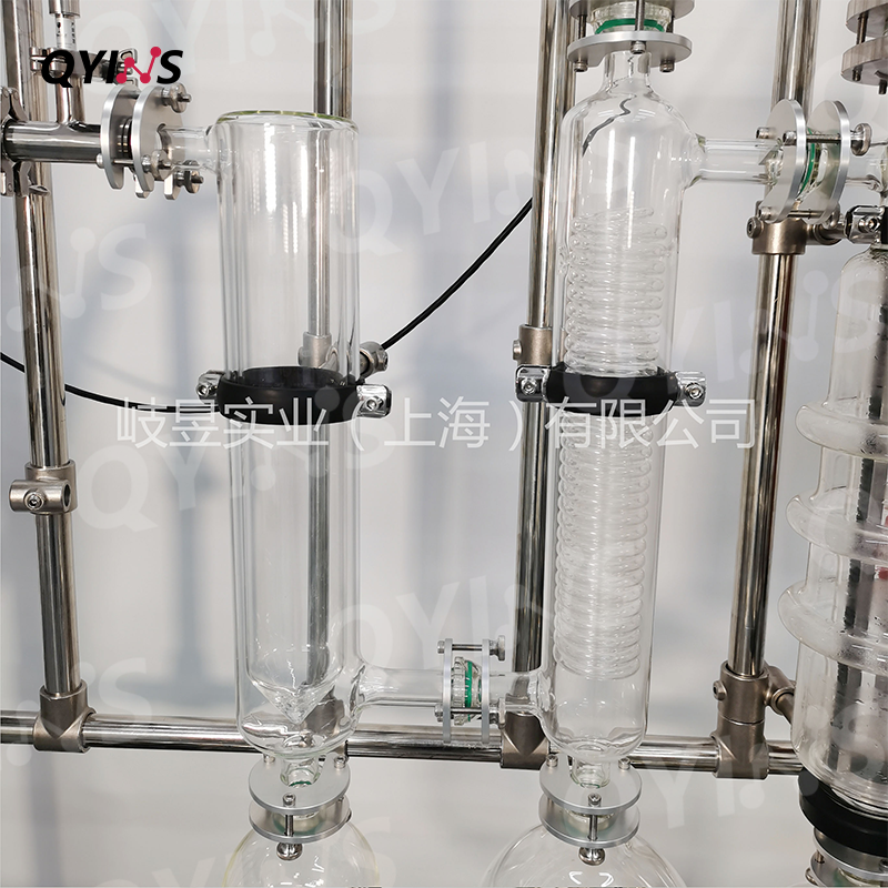 1.單層玻璃進(jìn)料罐,高硼硅玻璃材質(zhì)儲(chǔ)存物料,使物料能夠以相對(duì)穩(wěn)定和均勻的方式進(jìn)入分子蒸餾系統(tǒng)
