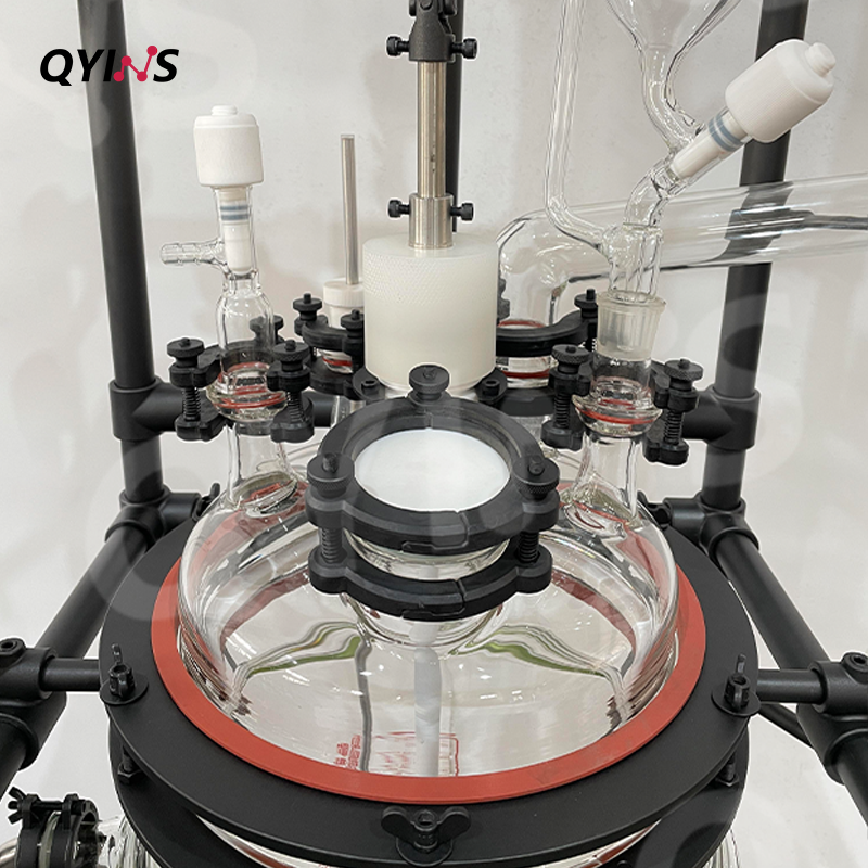 釜蓋開(kāi)口 共6口( 攪拌口,液體進(jìn)料口,測(cè)溫口,固體投料口,放氣口、備用口)可定制