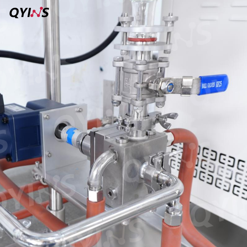 • 產(chǎn)品描述:150C玻璃薄膜蒸發(fā)器作為一款高效精密蒸發(fā)設(shè)備,憑借多項(xiàng)升級(jí)設(shè)計(jì)與穩(wěn)定性能,適配精細(xì)化工、制藥、食品等行業(yè)的物料濃縮、提純需求。設(shè)備采用加厚不銹鋼框架設(shè)計(jì),提升了結(jié)構(gòu)剛性與承重穩(wěn)定性,外觀平整光滑,美觀性大幅提升,適配潔凈車間等對(duì)環(huán)境與設(shè)備顏值有要求的場景,油路管道硬管連接,耐用性與安全性雙提升,齒輪泵穩(wěn)定進(jìn)料,物料傳輸更均勻,加大冷凝器設(shè)計(jì),冷凝效率顯著提升,無油螺桿泵配置,真空環(huán)境更潔凈,雙溫控控制箱,溫度調(diào)控更精準(zhǔn) 配備了截?cái)嚅y門,可在不斷真空下放料